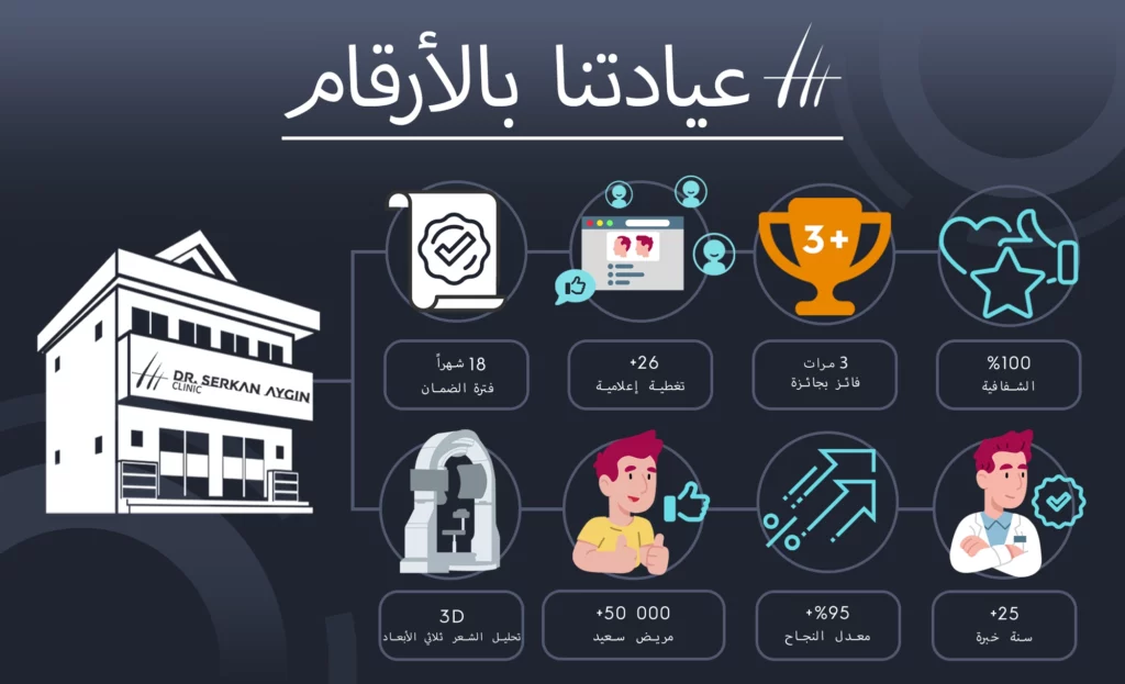 عيادة الدكتور سركان أيجين هي عيادة عريقة تركز على علاجات الشعر وعمليات زراعة الشعر، ومقرها تركيا. إذا كنت تعاني من مشاكل تساقط أو ضعف في الشعر، فقد يكون لدينا الحل المناسب لك!